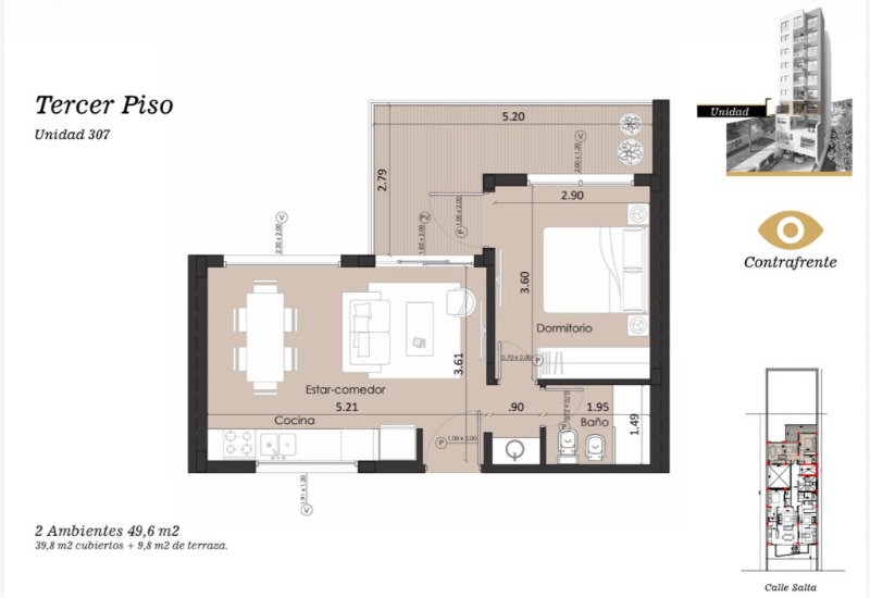 3er piso contrafrente de 49 m2 en u$s 99.000
